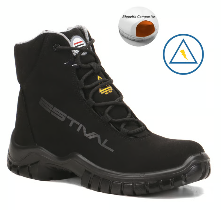 A biqueira composta, feita de materiais como fibra de vidro ou polímeros, também oferece proteção contra impacto e compressão, mas com menor condução térmica e elétrica. Por isso, botas com esse CA são comuns em ambientes elétricos e frigoríficos.