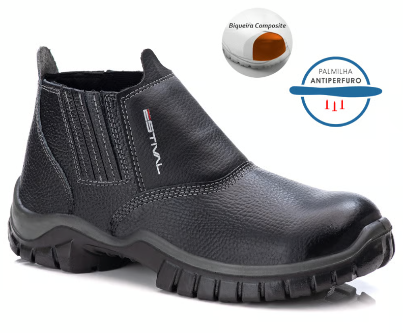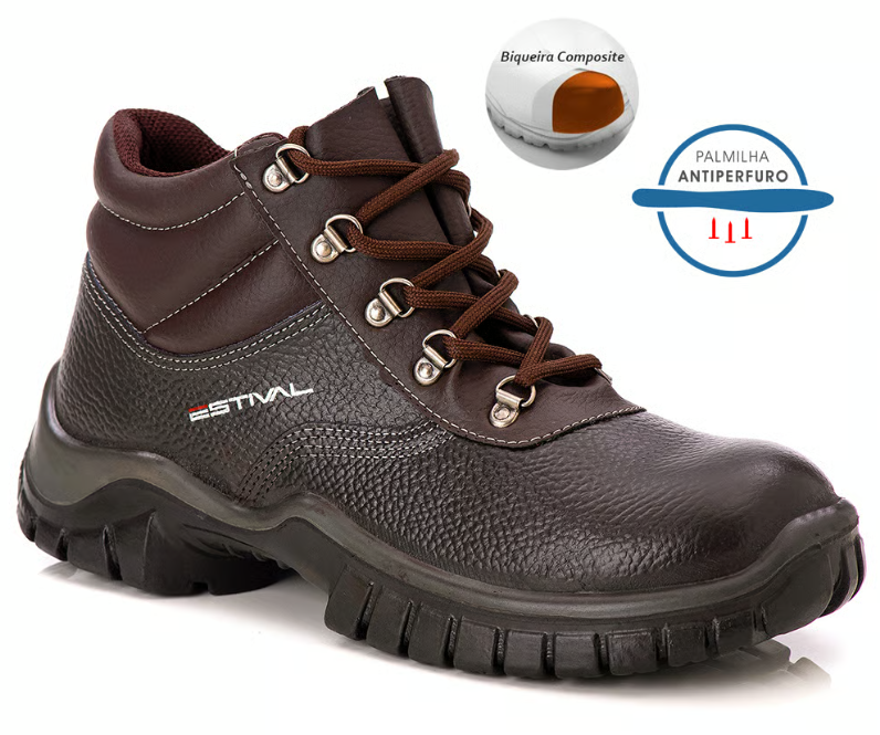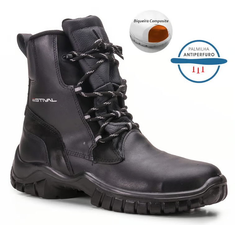 Os modelos da Estival são feitos com palmilha Lenzi com fibras de meta-aramida, não metálicas (kevlar), anti-corte e anti-perfurante, uma fibra de baixo peso e 5x mais resistente que o aço!